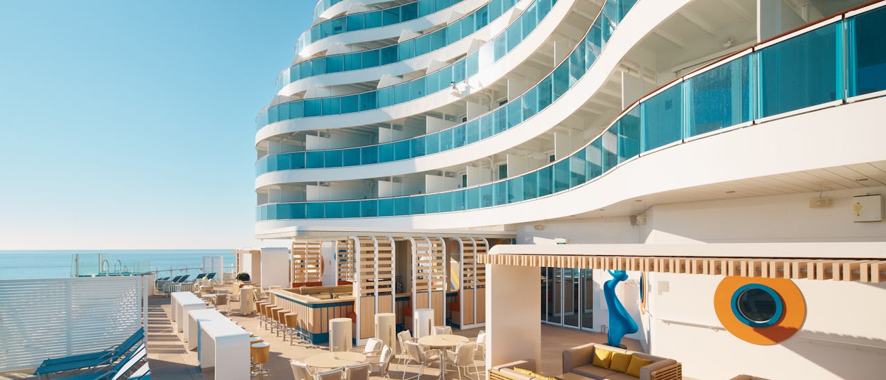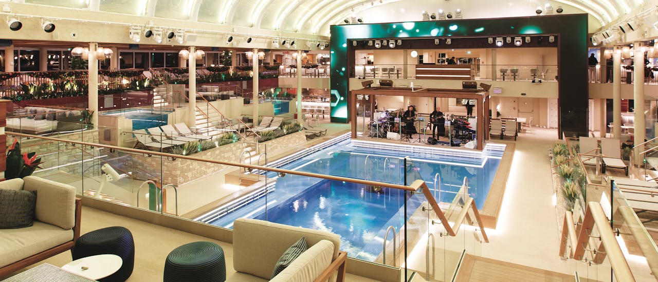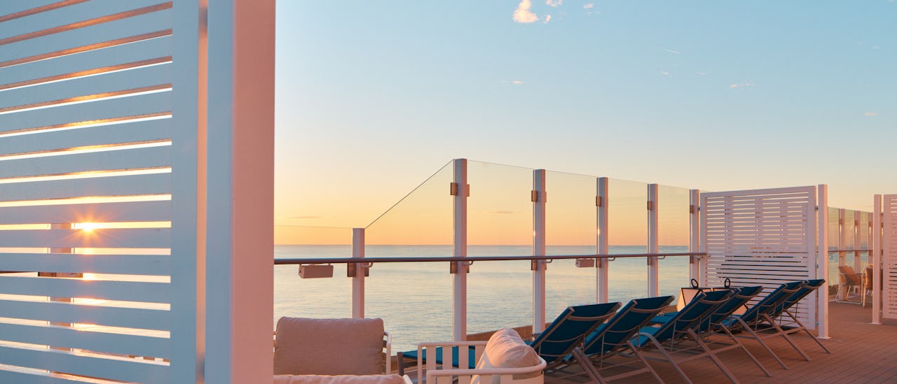 Genießen Sie die Sonne, schwimmen und entspannen Sie auf dem Pooldeck oder gönnen Sie sich eine Behandlung im Solemio Spa.