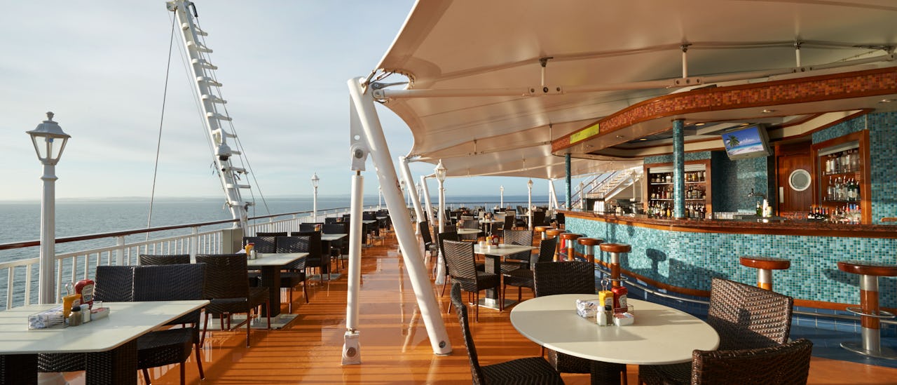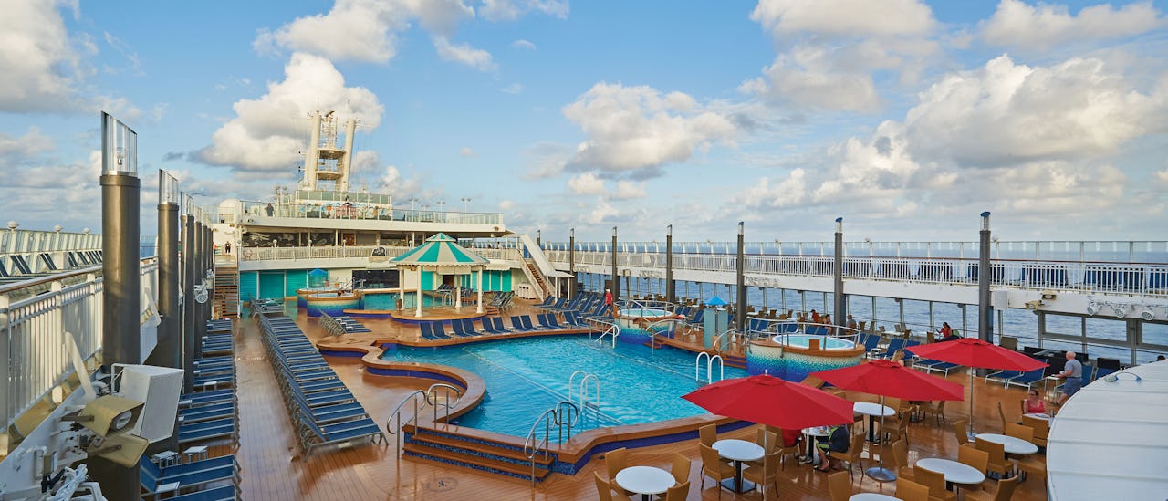 Erleben Sie wunderbare Ausblicke auf das Meer von einer Vielzahl von Pools, dem Spa und dem Fitnessstudio an der Spitze des Schiffes.