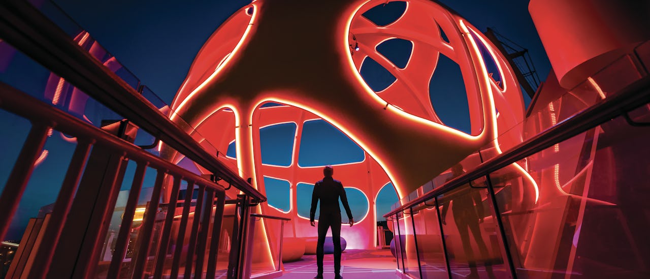 Entspannen Sie sich im Whirlpool, der außerhalb des Schiffes 30 Meter über dem Meeresspiegel hängt.